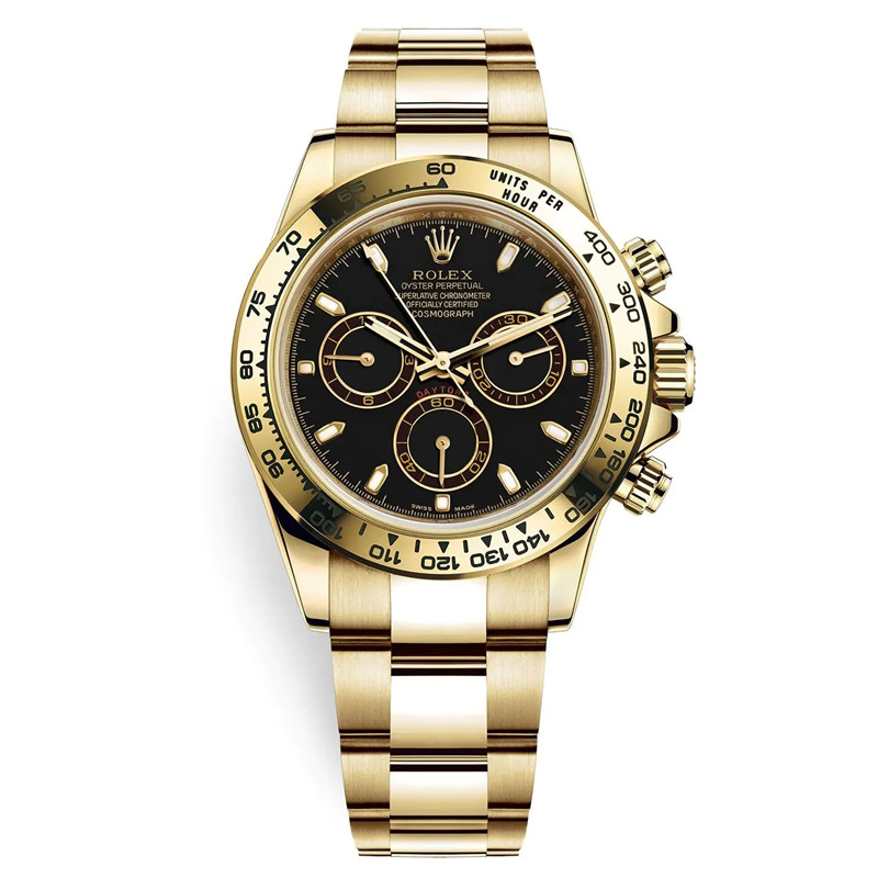 With its tachymetric scale, its three counters and its pushers, the Cosmograph Daytona was designed to be the ultimate timing tool for endurance racing drivers. The bezel features a tachymetric scale to read average speed over a given distance based on elapsed time.
