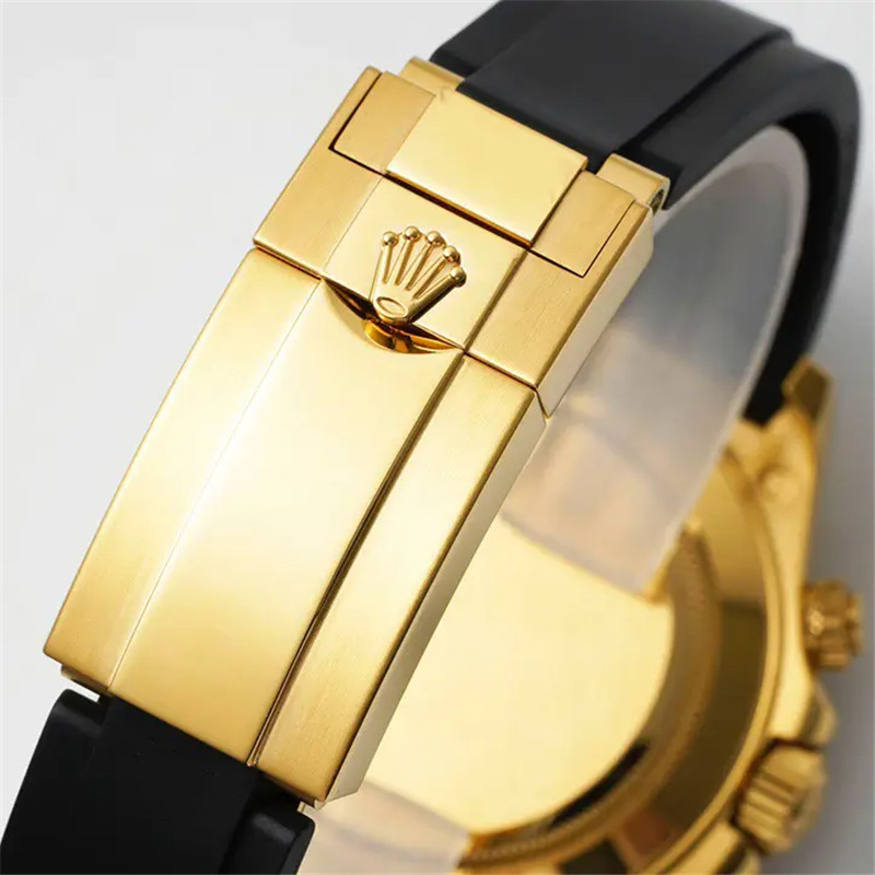The Daytona’s chronograph feature functions are activated by pushers that screw down like the winding crown when they are not in use, guaranteeing waterproofness to 100 metres. One press to start, stop or reset the chronograph produces a crisp, clear click that was perfected using the most advanced technology. watchmakers also perfected the mechanism to suit the ideal finger pressure on the pushers, and engineered it to provide an instantaneous and accurate start to the timing without sacrificing reliability.