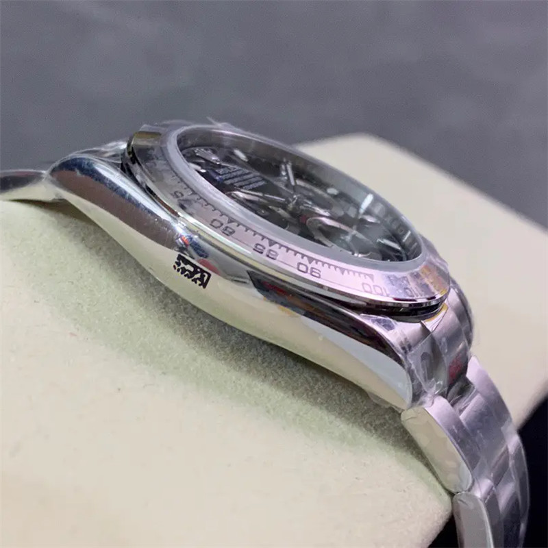 Daytona Swiss replica watches looks and function identical to a genuine Rolex. Our Swiss cloned Rolex chronograph movements feature every Rolex engraving, serial numbering and are lubed with Nano-oil Swiss lubricants and are designed to last a lifetime. Visually and functionally our chronograph movement 28.000 vibrations per hour offers the same fine sweep seconds hand “Rolex” motion as on the genuine Rolex. Our chronograph sub dials displays the seconds, minutes, hours and both screws down buttons are fully functional for the chronograph start-pause-stop functions.